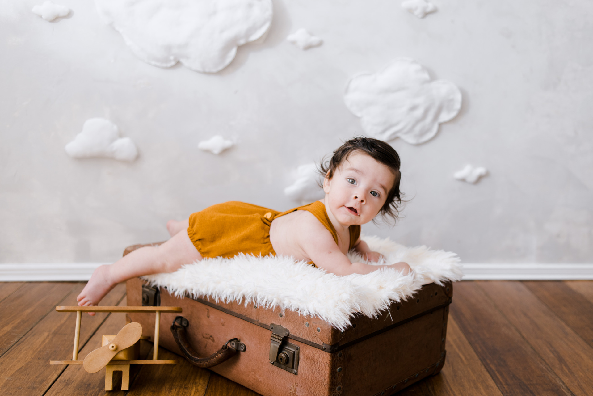 Nosso estilo de produção segue a tendência clean e minimalista para que seu bebê seja o destaque na foto e não se perda em meio a tantos acessórios e objetos