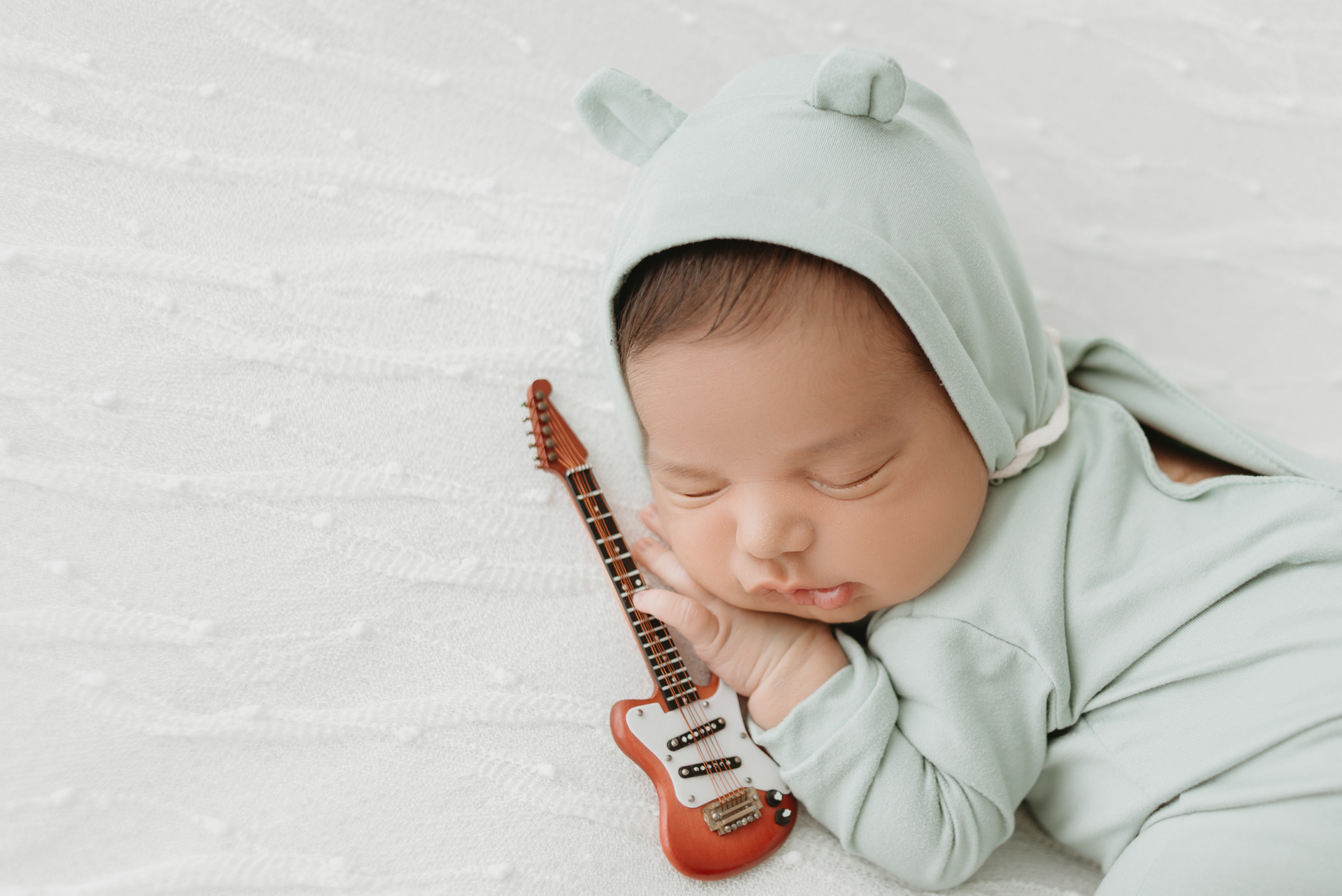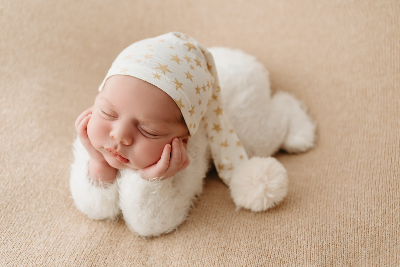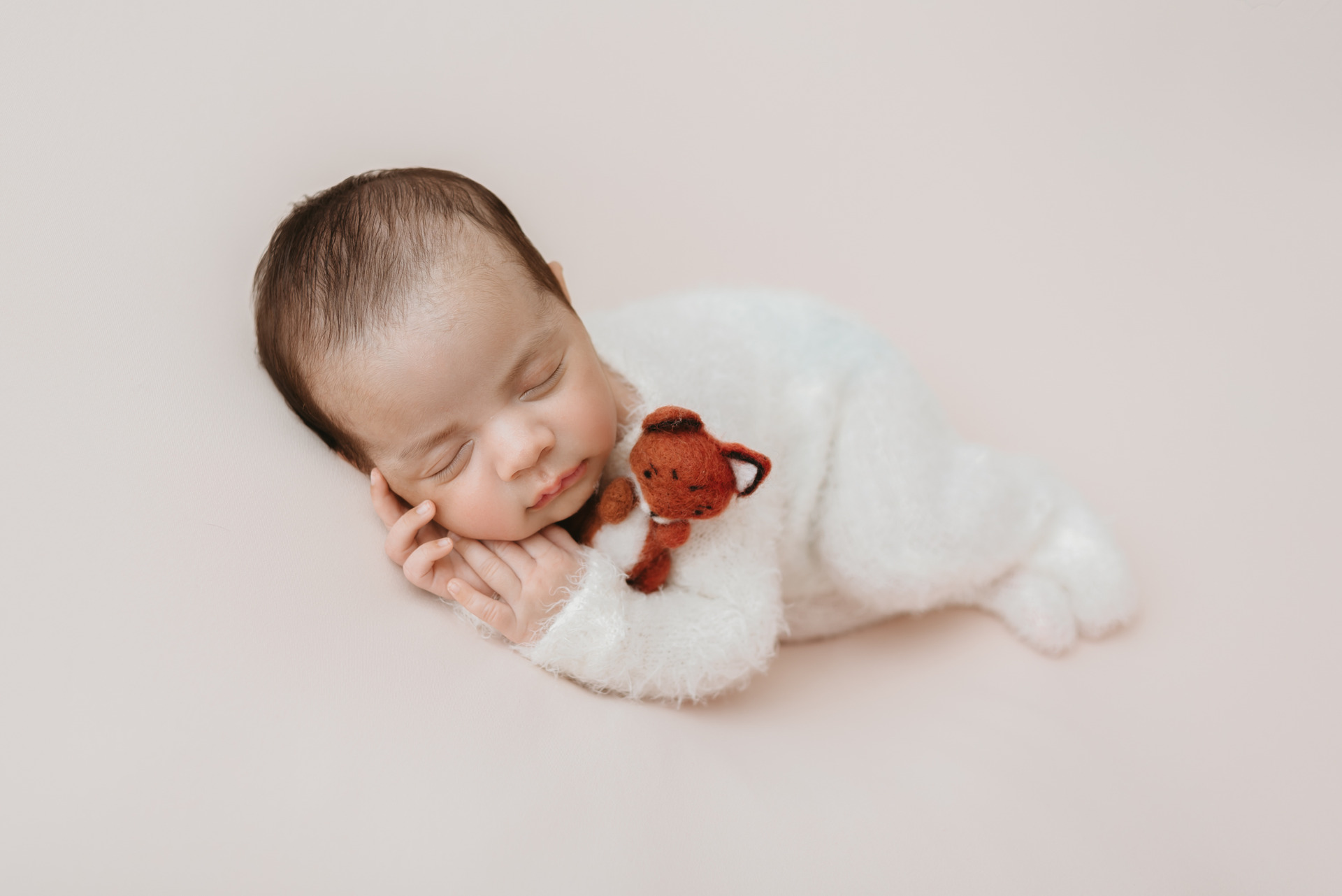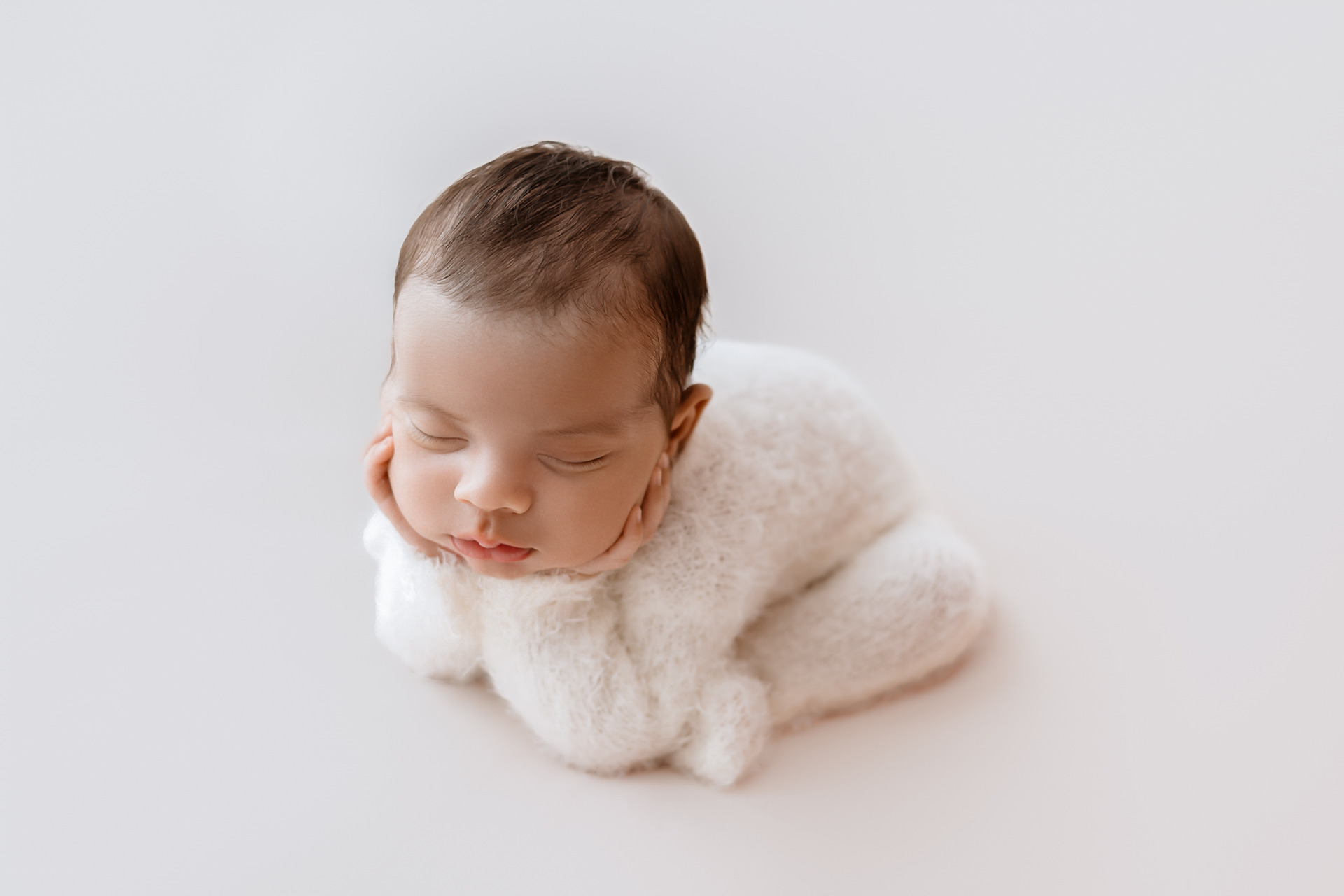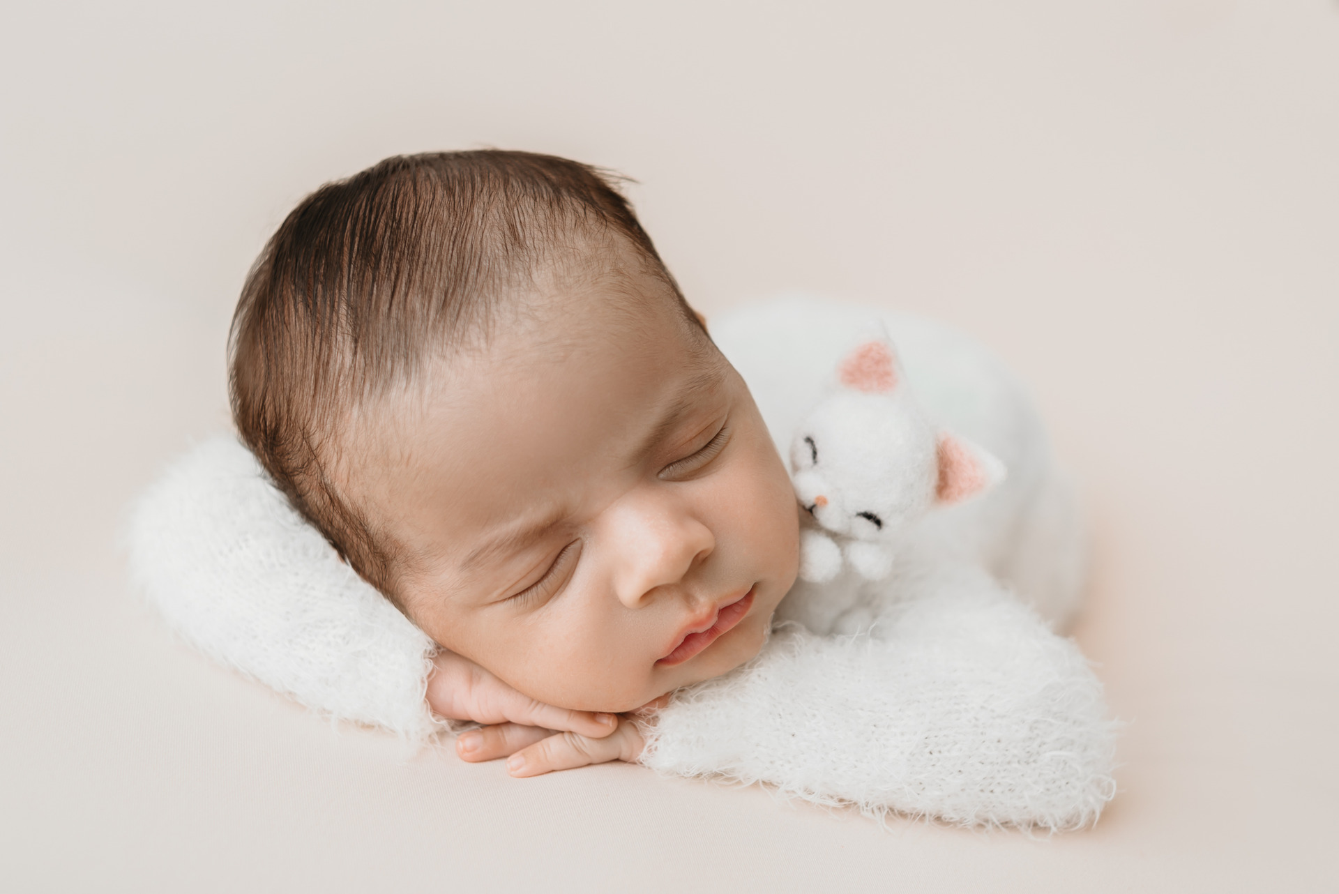 O ideal é que ele mame bastante para receber (uns 30 minutos) o leite posterior, mais denso e nutritivo, que ajuda a mantê-lo saciado por mais tempo. Isso contribui muito para que ele chegue ao estúdio sonolento e pronto para as primeiras fotos.