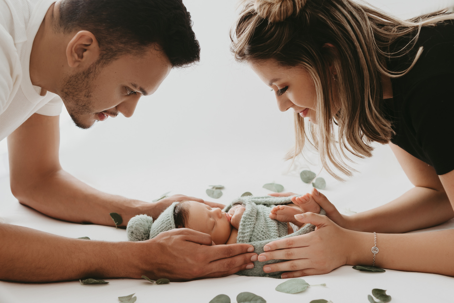 Durante o ensaio, a tranquilidade de vocês faz toda a diferença. Eu entendo que é natural se sentir um pouco apreensivo, mas quero que saibam: vocês estão em boas mãos. Tenho a formação, experiência e técnica necessárias para posicionar e cuidar do seu bebê com toda segurança e carinho.