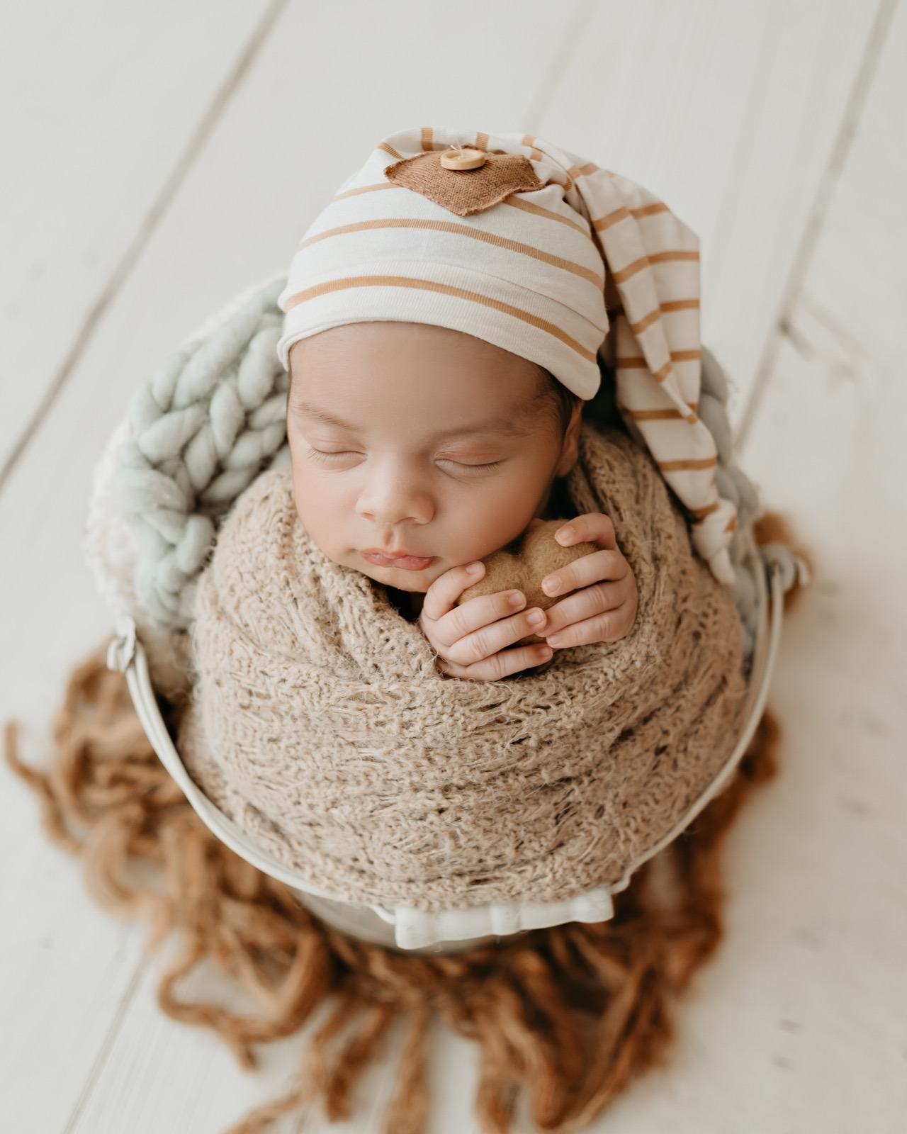 Antes do ensaio, caso queira, você pode compartilhar comigo as cores e estilos que mais ama. A partir disso, preparo tudo com carinho — dos tecidos às roupinhas.