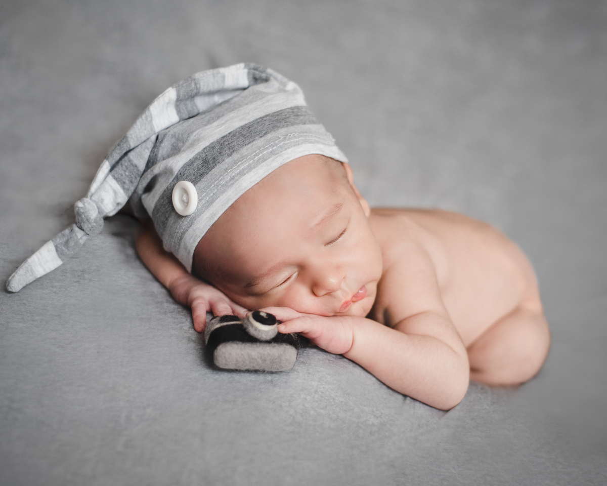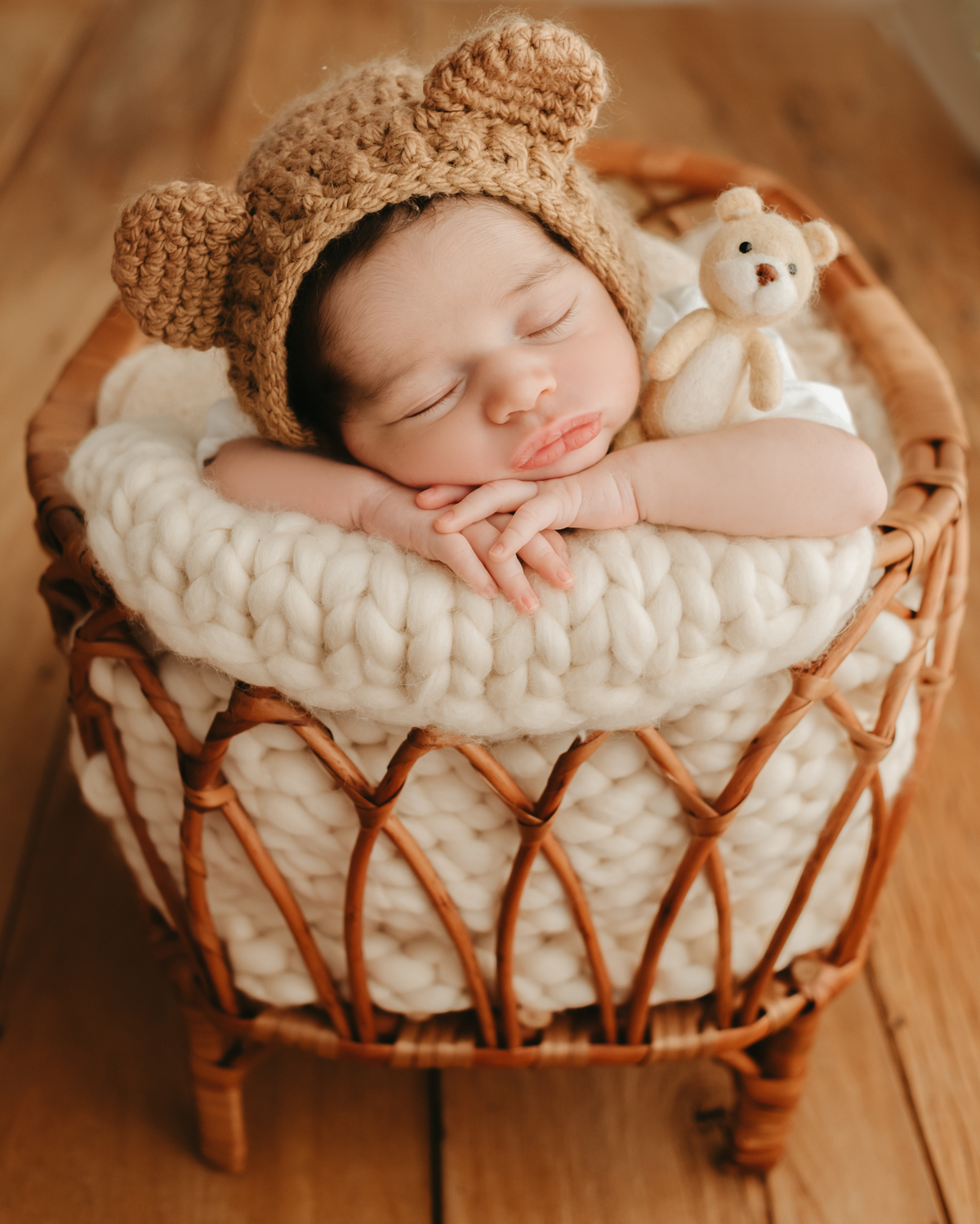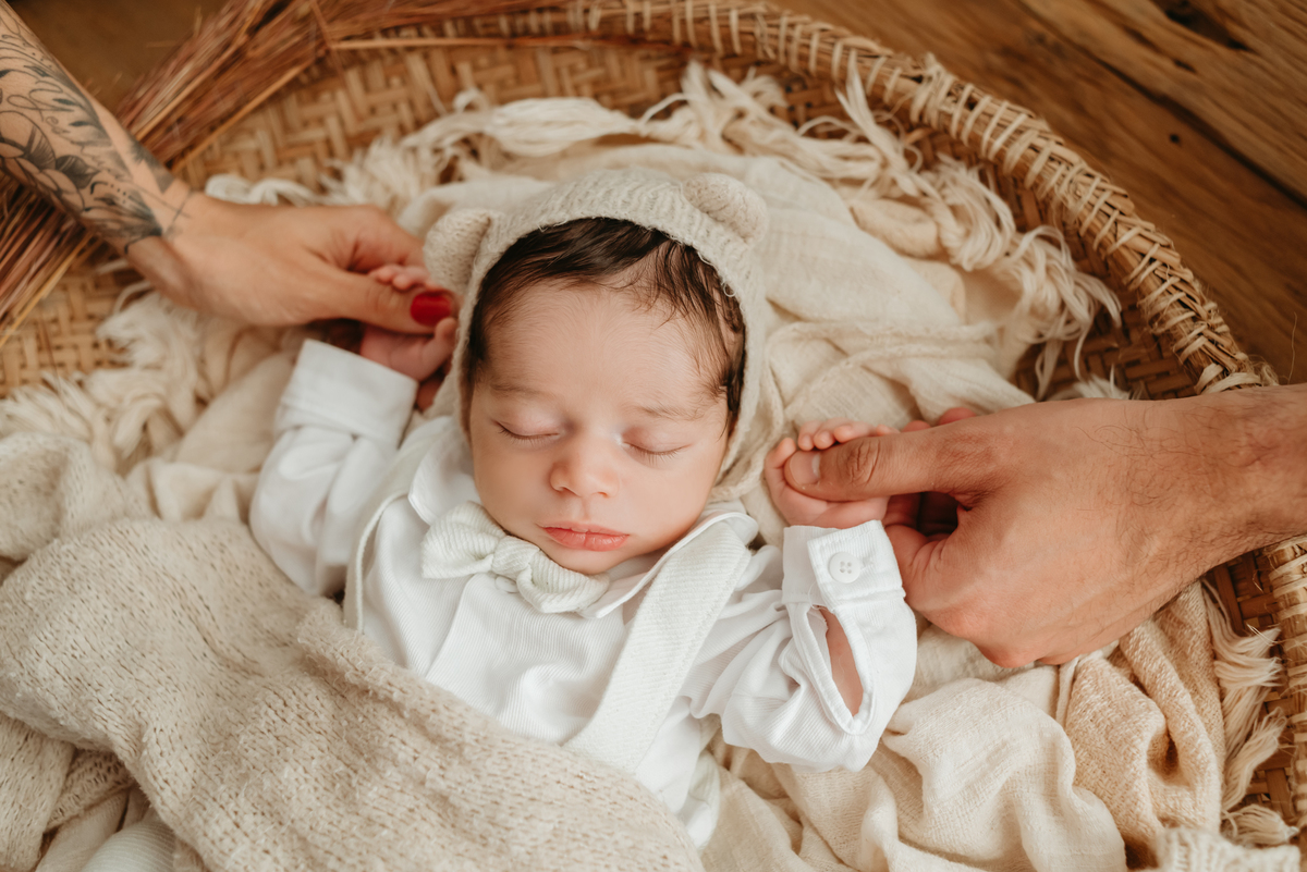 Esse mocinho já estava com 30 dias quando fotografamos, mesmo assim conseguimos realizar a sessão do newborn tradicional.